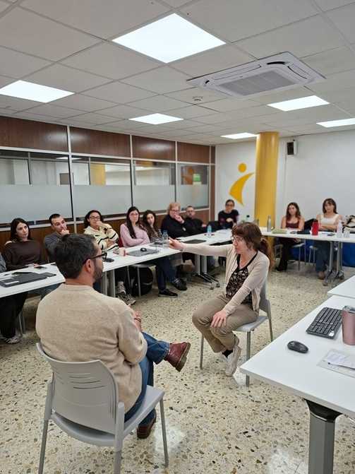 D’altra banda, tot l’equip d’Ocupació ha participat en una formació en Competències comunicatives i gestió emocional, impartida per El Despertador, orientada a reforçar eines per a l’acompanyament professional. La formació ha abordat aspectes com la regulació emocional, la comunicació assertiva, l’escolta activa i la gestió de situacions difícils i de conflicte, aportant recursos pràctics per a la intervenció diària amb les persones usuàries.